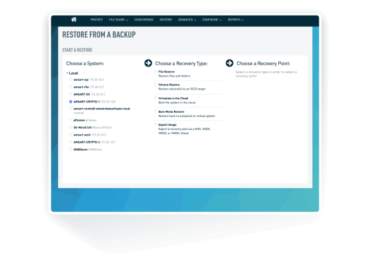 Restaura sistemas completos o archivos individuales en minutos para reducir tiempos de inactividad críticos.