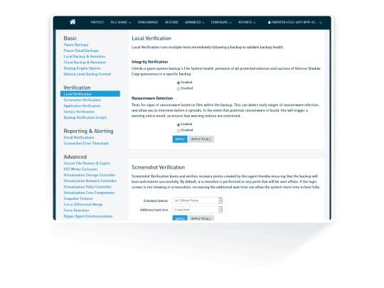 Administra políticas, visualiza respaldos y realiza pruebas de recuperación desde una única consola intuitiva.